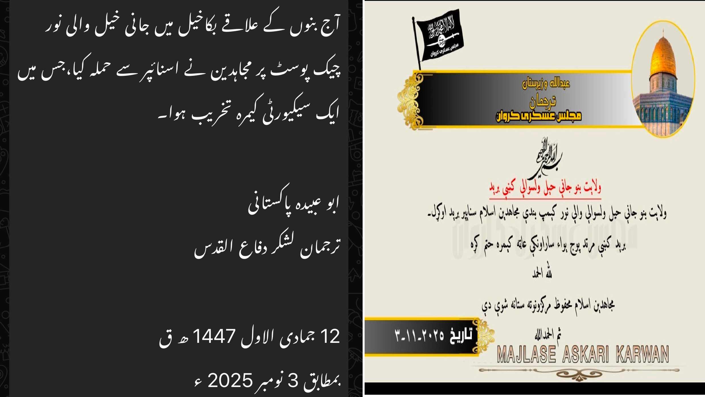 The group’s cooperative approach extends beyond Khyber. On November 3, 2025, MAK claimed a joint attack with TTP in the Ghazi Khel area of Lakki Marwat. At the time, TTP had reduced public claims amid tensions between Afghanistan and Pakistan, instead relying on proxy groups to acknowledge attacks. MAK collaborated with one such proxy, Lashkar-e-Defa al-Quds (LDQ), jointly claiming some operations in Jani Khel.